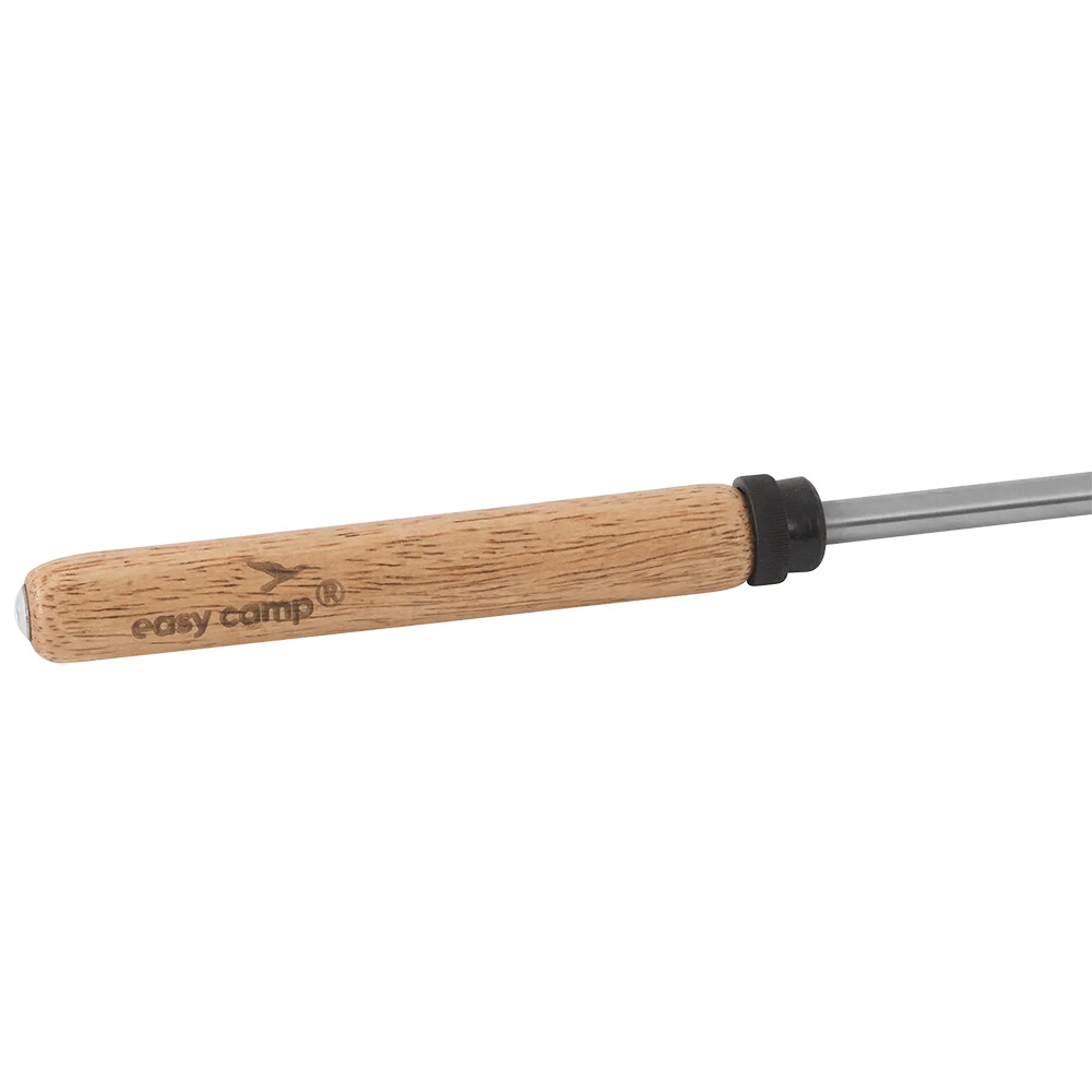 Ideální doplněk pro vaření a opékání nad otevřeným ohněm Easy Camp Campfire Grill Fork. Vidlička má nastavitelnou délku až 86 cm, takže snadno dosáhnete na jídlo i přes větší oheň, a díky kompaktním rozměrům ve složeném stavu (31 cm) se vejde do batohu nebo kempinkové výbavy. Pevný hrot je vyroben z nerezové oceli, která odolá vysokým teplotám a je snadno omyvatelná, zatímco dřevěná rukojeť poskytuje příjemný úchop bez přehřívání.