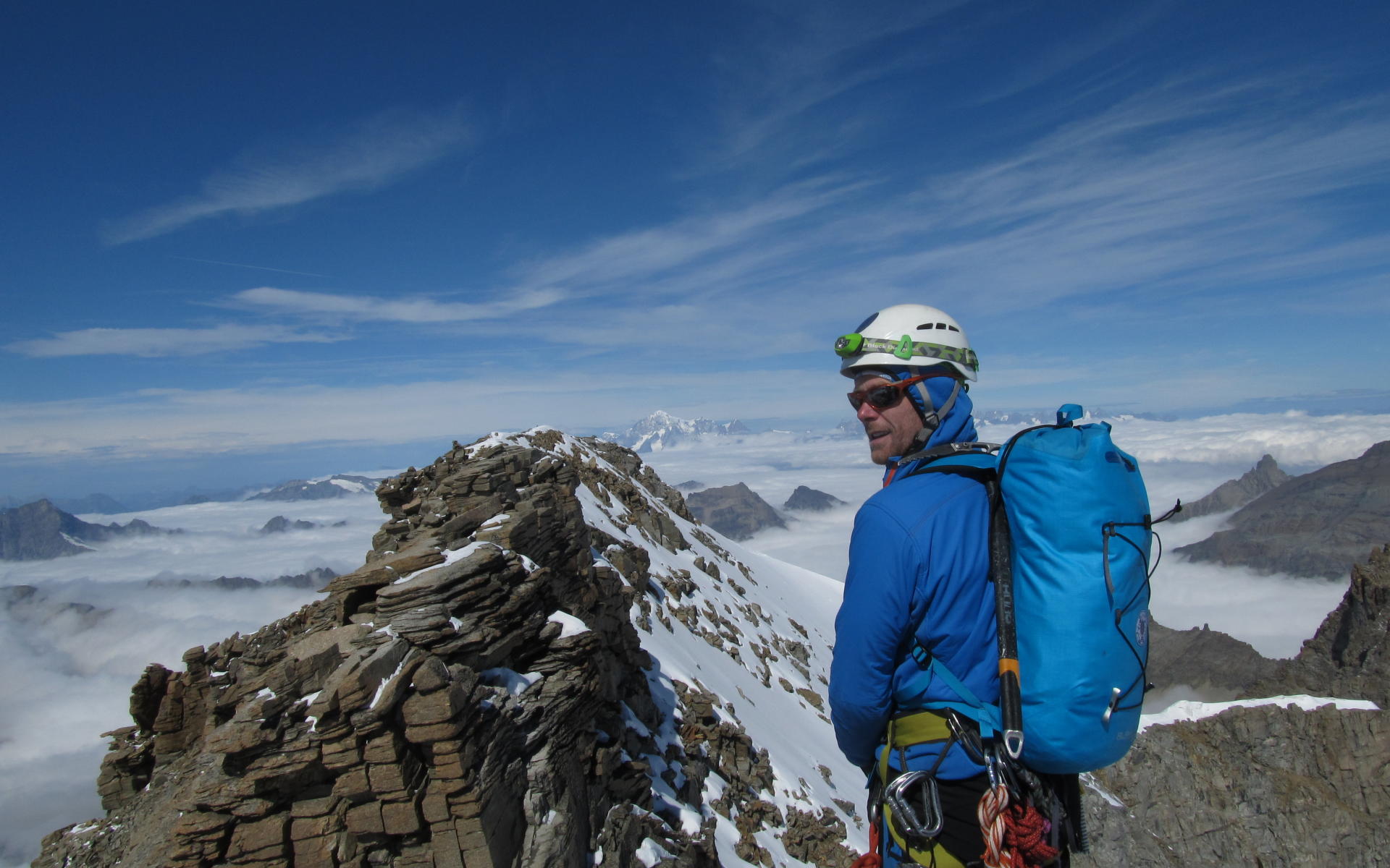 Jednou z výstupových variant Paradisa, kterou jsem až do letoška nešel byl traverz hřebene pře Picollo Paradiso. Nástup strmým ledem a pak nekonečný skalní hřeben s několika firnovými pasážemi. Většinu času lezení těsně pod 4000 m a hlavně od určitého momentu velmi obtížný, až nemožný návrat nebo ústup za zhoršení podmínek. Takže pozor na plánování a rozhodování, kdy do tohoto cíle jít a kdy dát raději něco kratšího.
