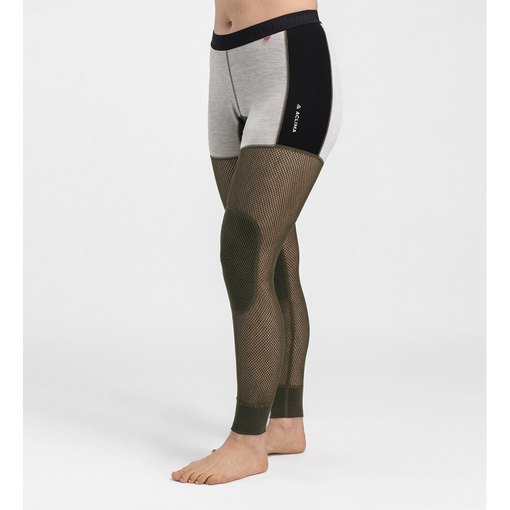 Dámské vlněné spodky WoolNet Hybrid Longs značky Aclima se síťovinou, které kombinují to nejlepší ze dvou Aclima světů: originální tkaninu Woolnet a elastický WarmWool. Kombinace těchto materiálů poskytuje dodatečnou izolaci a ochranu v exponovaných oblastech těla, stejně jako jedinečnou prodyšnost. A proč síťové? Protože skvěle odvádí vlhkost, extrémně rychle schnou a současně vytváří vzduchové kapsy, které velmi dobře izolují bez pocitu lepivosti a přílišného tepla. Pleteninou vlněného vlákna v síť tedy získáváme jedinečné výhody dokonalého komfortu.