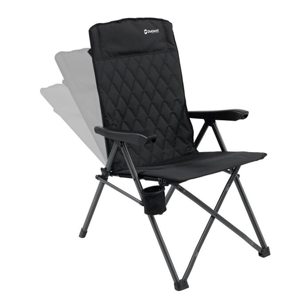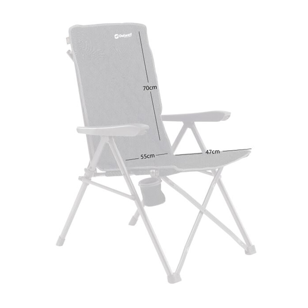 Skládací křeslo značky Outwell vám poskytne stabilní a pohodlné posezení s nosností až 125 kg. Má příjemné polstrování sedací i zádové části, s vnitřní 2 cm vrstvou z měkkého vlákna. Zádový díl lze nastavit do třech různých poloh a nastavenou polohu jednoduše zaaretujete. Díky tomu je křeslo vhodné k posezení u stolu i pro relaxaci. Konstrukce je z oceli s vnější pískovou úpravou. Součástí je také držák nápojů, kam se vám dobře vejde plechovka i láhev většího objemu.